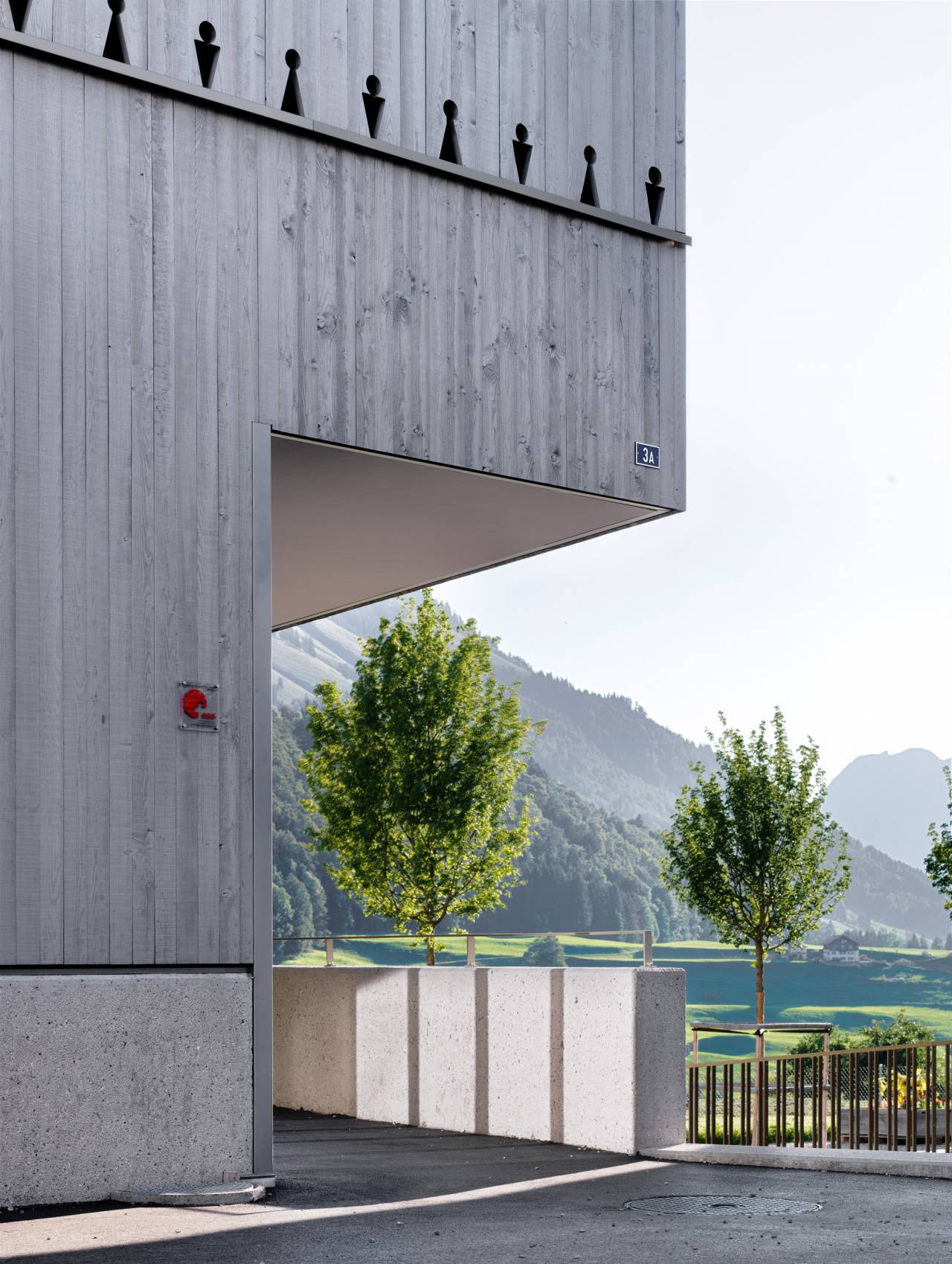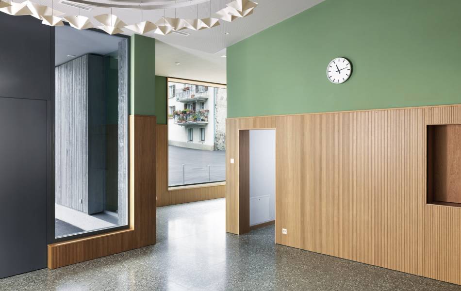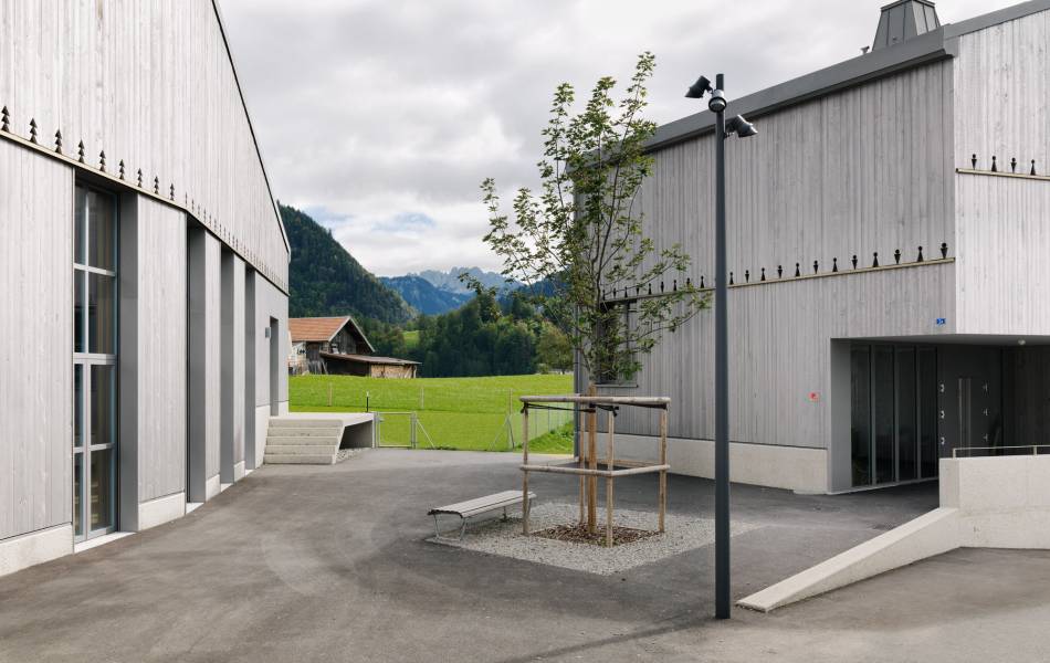 En divisant le programme en deux et en le répartissant dans des constructions aux volumes simples et rationnels, le projet respecte l’échelle du lieu et préserve un équilibre harmonieux entre les bâtiments existants. La géométrie des nouveaux volumes facilite une implantation précise et équilibrée dans le site. Elle favorise la fluidité des espaces et des sous-espaces. Ceux-ci restent ouverts et reliés entre eux et à la place du village en s’inscrivant dans la logique d’un tissu villageois existant.