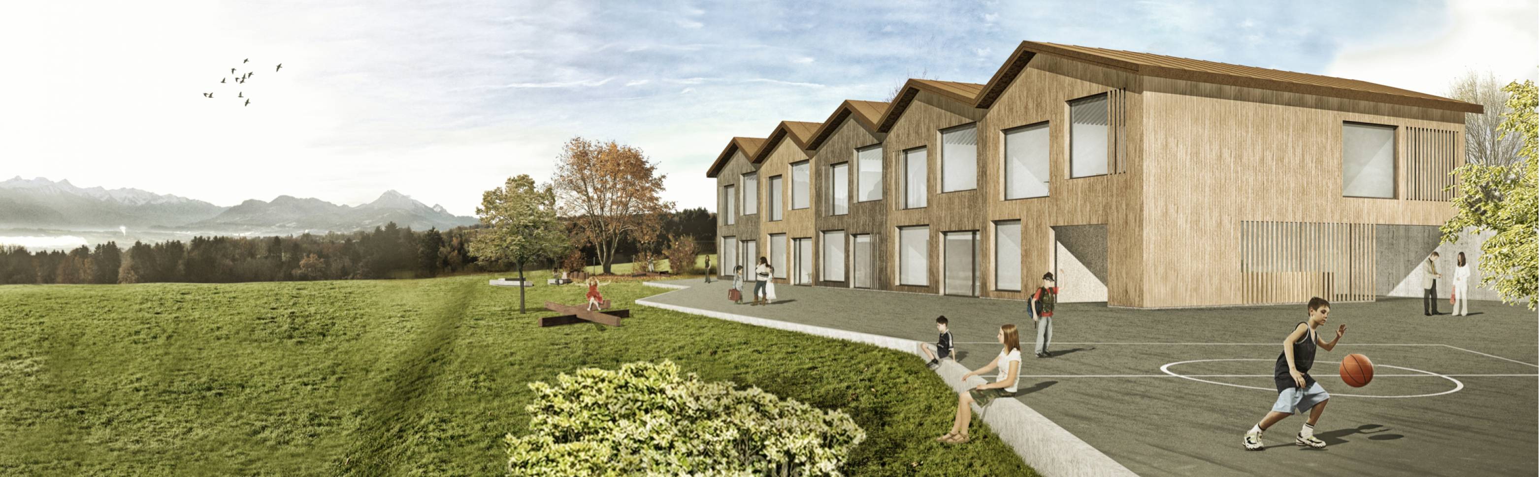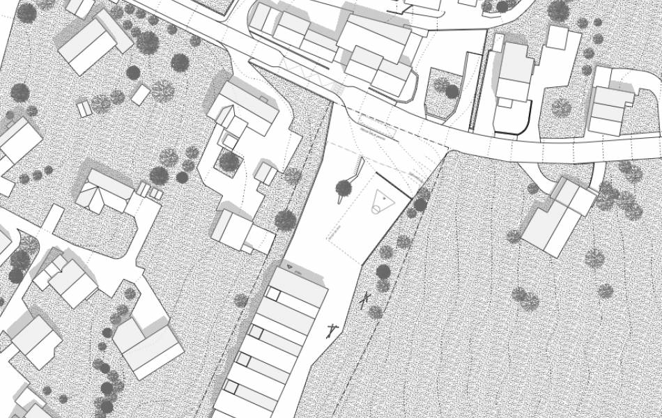 A l’image du tissu bâti qui s’étage en gradin le long de la pente, le nouveau bâtiment de l’école s’implante sur le site comme on s’installe sur un belvédère pour profiter du paysage. Construit dans la continuité de l’école et du mur de soutènement existants, un nouveau mur gère la pente prolongeant le système en place. Il devient ainsi le point d’appui contre lequel repose le nouveau volume.