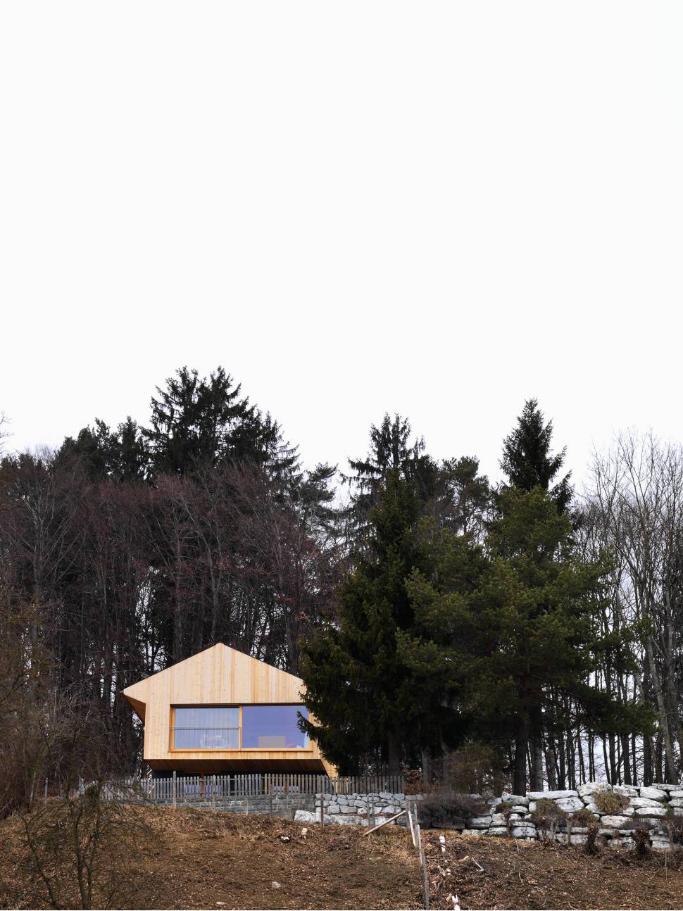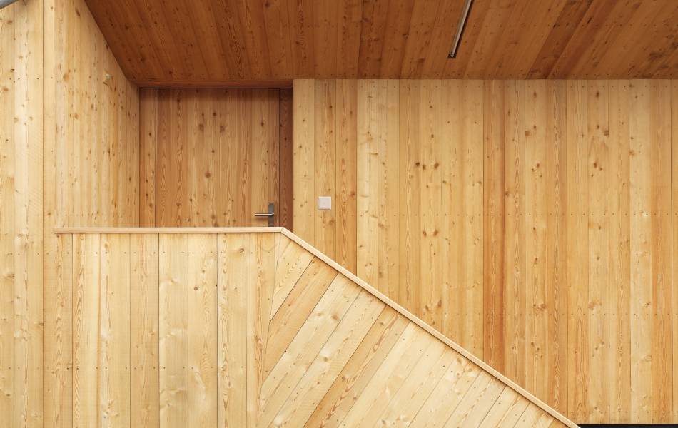 Bénéficiant d’une vue exceptionnelle sur le lac de la Gruyère et les préalpes fribourgeoises, la nouvelle construction en bois est posée en porte-à-faux sur les murs du rez-de-chaussée de l’ancien bâtiment. S’inspirant des constructions pavillonnaires, elle dégage une impression de légèreté.