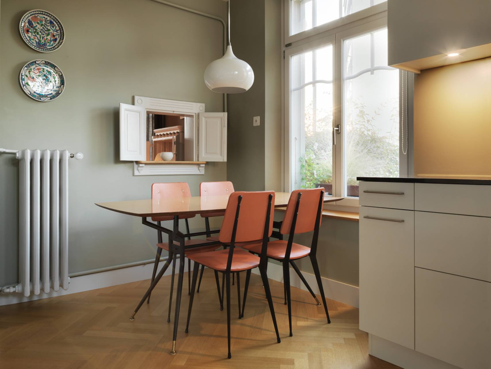 La transformation de l’appartement principal sis au rez-de-chaussée s’est voulue modeste, en minimisant les interventions lourdes au profit d’une démarche non invasive et respectueuse de l’état existant.