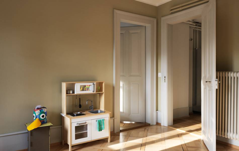Hormis la cage d’escalier autrefois publique et qui est devenue privative, l’organisation du plan est restée identique.